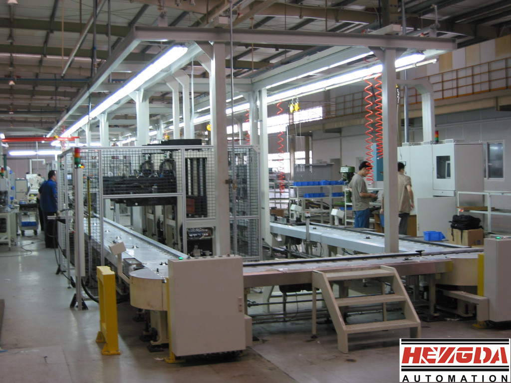 隨著汽車工業(yè)的發(fā)展,發(fā)動機(jī)裝配線 的自動化程度越來越高,發(fā)動機(jī)裝配線主要由活塞連桿分裝線、缸蓋分裝線、總成裝配線組成。具體的設(shè)備大致包括:摩擦輸送線、托盤、打號機(jī)、激光標(biāo)簽打印機(jī)、翻轉(zhuǎn)機(jī)、缸孔噴油裝置、活塞插入輔助裝置、曲軸分組號攝像識別裝置、主軸瓦選配裝置、氣門插入翻轉(zhuǎn)臺、氣門拍打裝置、活塞銷壓裝機(jī)、潤滑油噴嘴壓裝及檢測機(jī)、氣門油封壓裝機(jī)、缸蓋水管接頭壓裝機(jī)、火花塞導(dǎo)管壓裝機(jī)、主軸承蓋螺栓擰緊機(jī)、連桿螺栓擰緊機(jī)、缸蓋螺栓擰緊機(jī)、凸輪軸蓋螺栓擰緊機(jī)、正時鏈蓋擰緊機(jī)、油底殼擰緊機(jī)、曲軸皮帶輪螺栓擰緊機(jī)、主軸承蓋螺栓松開機(jī)、連桿螺栓旋松機(jī)、總線控制系統(tǒng)與信息管理系統(tǒng)、裝配線工具、量檢具、通用料架、智能料架、冷試臺架、機(jī)械挺柱選配裝置、氣門鎖夾壓裝機(jī)、涂膠及機(jī)油加注設(shè)備、泄漏檢測設(shè)備、曲軸端隙及扭矩測量裝置、曲軸回轉(zhuǎn)力矩檢測+油道試漏、MPI試漏機(jī)、缸蓋泄漏試驗(yàn)機(jī)、長缸油路試漏機(jī)、長缸水路試漏機(jī)。