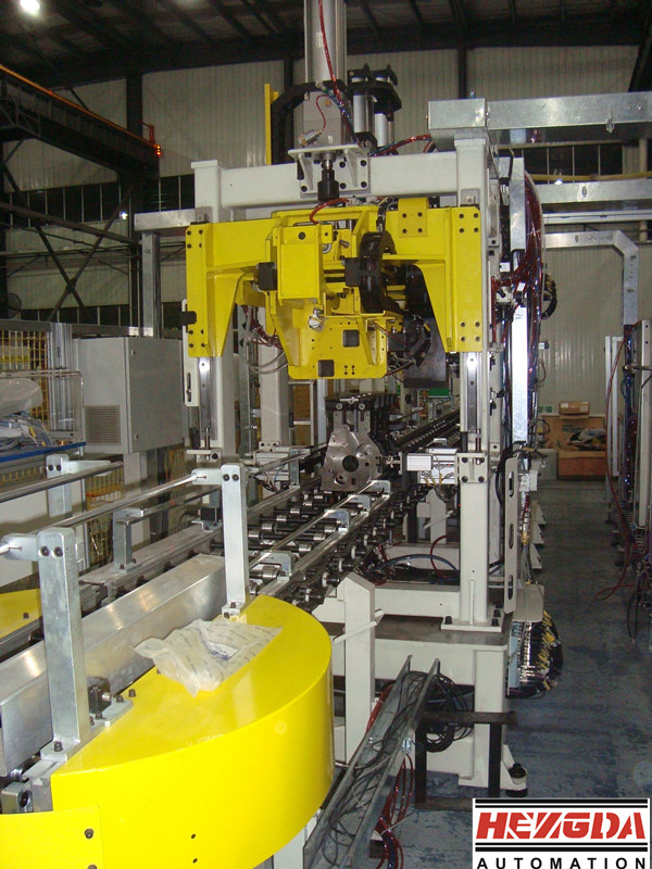 隨著汽車工業(yè)的發(fā)展,發(fā)動機(jī)裝配線 的自動化程度越來越高,發(fā)動機(jī)裝配線主要由活塞連桿分裝線、缸蓋分裝線、總成裝配線組成。具體的設(shè)備大致包括:摩擦輸送線、托盤、打號機(jī)、激光標(biāo)簽打印機(jī)、翻轉(zhuǎn)機(jī)、缸孔噴油裝置、活塞插入輔助裝置、曲軸分組號攝像識別裝置、主軸瓦選配裝置、氣門插入翻轉(zhuǎn)臺、氣門拍打裝置、活塞銷壓裝機(jī)、潤滑油噴嘴壓裝及檢測機(jī)、氣門油封壓裝機(jī)、缸蓋水管接頭壓裝機(jī)、火花塞導(dǎo)管壓裝機(jī)、主軸承蓋螺栓擰緊機(jī)、連桿螺栓擰緊機(jī)、缸蓋螺栓擰緊機(jī)、凸輪軸蓋螺栓擰緊機(jī)、正時鏈蓋擰緊機(jī)、油底殼擰緊機(jī)、曲軸皮帶輪螺栓擰緊機(jī)、主軸承蓋螺栓松開機(jī)、連桿螺栓旋松機(jī)、總線控制系統(tǒng)與信息管理系統(tǒng)、裝配線工具、量檢具、通用料架、智能料架、冷試臺架、機(jī)械挺柱選配裝置、氣門鎖夾壓裝機(jī)、涂膠及機(jī)油加注設(shè)備、泄漏檢測設(shè)備、曲軸端隙及扭矩測量裝置、曲軸回轉(zhuǎn)力矩檢測+油道試漏、MPI試漏機(jī)、缸蓋泄漏試驗機(jī)、長缸油路試漏機(jī)、長缸水路試漏機(jī)。