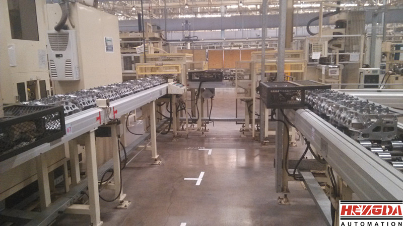 隨著汽車(chē)工業(yè)的發(fā)展,發(fā)動(dòng)機(jī)裝配線 的自動(dòng)化程度越來(lái)越高,發(fā)動(dòng)機(jī)裝配線主要由活塞連桿分裝線、缸蓋分裝線、總成裝配線組成。具體的設(shè)備大致包括:摩擦輸送線、托盤(pán)、打號(hào)機(jī)、激光標(biāo)簽打印機(jī)、翻轉(zhuǎn)機(jī)、缸孔噴油裝置、活塞插入輔助裝置、曲軸分組號(hào)攝像識(shí)別裝置、主軸瓦選配裝置、氣門(mén)插入翻轉(zhuǎn)臺(tái)、氣門(mén)拍打裝置、活塞銷(xiāo)壓裝機(jī)、潤(rùn)滑油噴嘴壓裝及檢測(cè)機(jī)、氣門(mén)油封壓裝機(jī)、缸蓋水管接頭壓裝機(jī)、火花塞導(dǎo)管壓裝機(jī)、主軸承蓋螺栓擰緊機(jī)、連桿螺栓擰緊機(jī)、缸蓋螺栓擰緊機(jī)、凸輪軸蓋螺栓擰緊機(jī)、正時(shí)鏈蓋擰緊機(jī)、油底殼擰緊機(jī)、曲軸皮帶輪螺栓擰緊機(jī)、主軸承蓋螺栓松開(kāi)機(jī)、連桿螺栓旋松機(jī)、總線控制系統(tǒng)與信息管理系統(tǒng)、裝配線工具、量檢具、通用料架、智能料架、冷試臺(tái)架、機(jī)械挺柱選配裝置、氣門(mén)鎖夾壓裝機(jī)、涂膠及機(jī)油加注設(shè)備、泄漏檢測(cè)設(shè)備、曲軸端隙及扭矩測(cè)量裝置、曲軸回轉(zhuǎn)力矩檢測(cè)+油道試漏、MPI試漏機(jī)、缸蓋泄漏試驗(yàn)機(jī)、長(zhǎng)缸油路試漏機(jī)、長(zhǎng)缸水路試漏機(jī)。