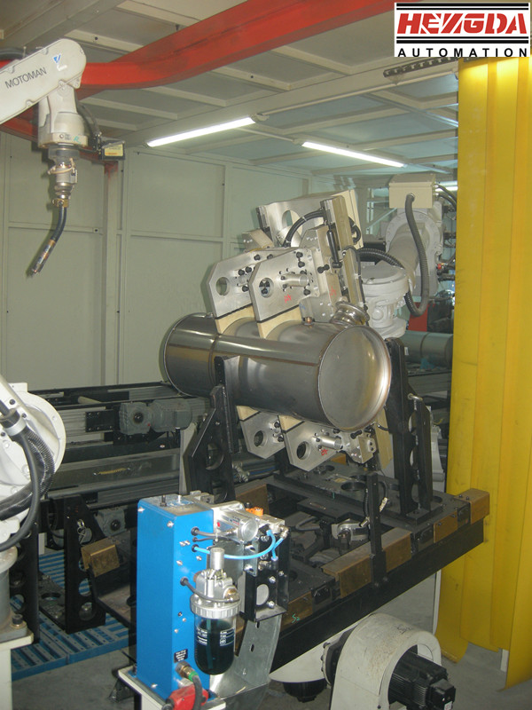 該機(jī)器人焊接工作站主要用于煤機(jī)結(jié)構(gòu)件的自動焊接,采用頭尾架式單軸變位機(jī)+六軸聯(lián)動機(jī)器人雙工位布局,機(jī)器人安裝于雙工位中間。為方便進(jìn)行多種規(guī)格工件焊接及參數(shù)設(shè)置,控制系統(tǒng)采用三菱工業(yè)觸摸屏方式進(jìn)行控制和操作,使整套設(shè)備具有更大的柔性及靈活性,并可有效提高生產(chǎn)效率。焊接工藝采用熔化極氣體保護(hù)焊接工藝,焊絲直徑規(guī)格:,桶裝焊絲配置,電流調(diào)節(jié)范圍,焊接參數(shù)可調(diào)用預(yù)置和存儲的數(shù)據(jù)。機(jī)器人系統(tǒng)選用日本機(jī)器人系統(tǒng),型號,配高性能機(jī)器人控制器,配套焊縫起始點尋位功 能和電弧跟蹤功能,實現(xiàn)擺動焊接,焊接效率高,焊縫質(zhì)量穩(wěn)定可靠。焊接系統(tǒng):;選用日本的機(jī)器人專用逆變焊接電源,型號。焊槍選用日本專用機(jī)器人水冷焊槍。
